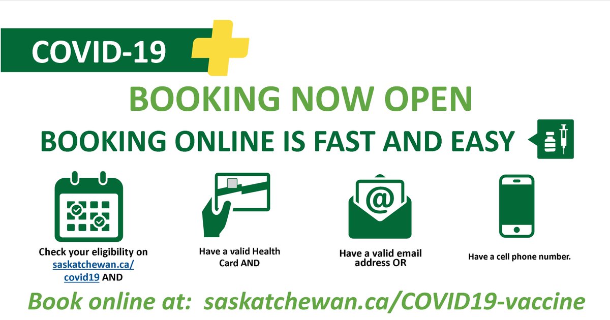This page features information on current and upcoming COVID-19 immunization clinics - both booked and pop-up clinics. Saskatchewan announces online booking system for COVID-19 vaccine. Is the COVID-19 vaccine mandatory.