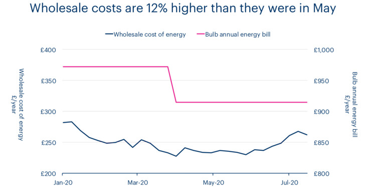 Energy market experts believe gas and electricity wholesale prices will remain high through the winter and into 2022 because energy demand is recovering rapidly after the. Bulbs new price is now only an average 12yr under Ofgems price. Meanwhile Bulb Energys Vari-Fair Prepay tariff will jump by an average 27 a year up from 998 to 1025 for a typical dual fuel household.